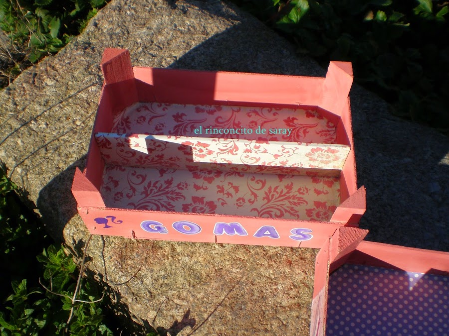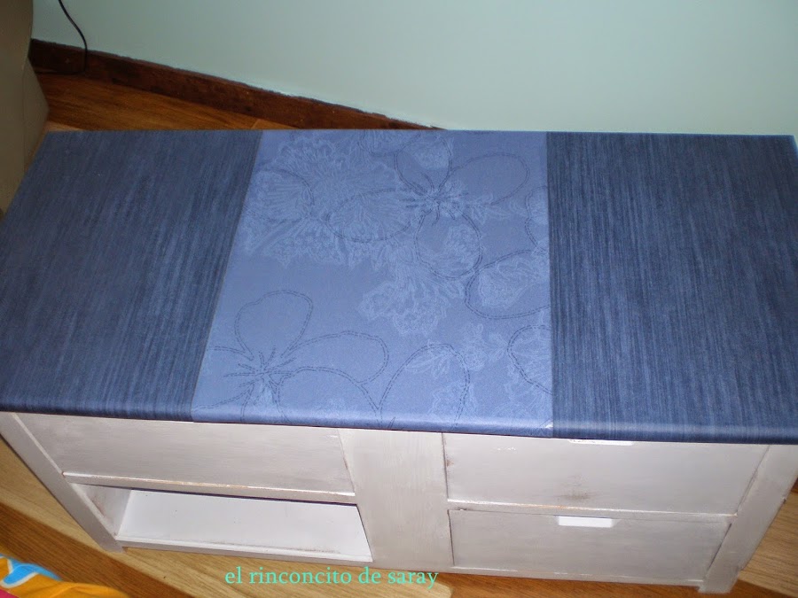 La tapa la forre con papel de empapelar ,en esta vez lo e desgastado un poco por algunas zonas para dar un toque mas desenfadado .