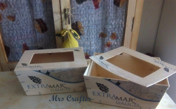 Pués son cajas de mejillones. Me encantaron nada más verlas y enseguida empecé a dar vueltas sobre cómo decorarlas.