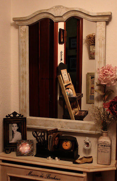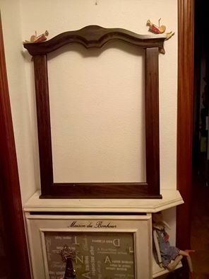 Pues bien, eso hice un día que me encontré de repente con este marco de espejo junto a un contenedor. Llamé a Mr. Crafter y le dije que bajase a recogerme que de allí no me movía sin él. !Amor a primera vista!.