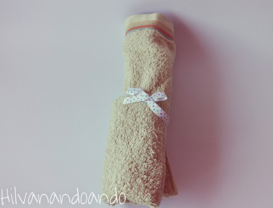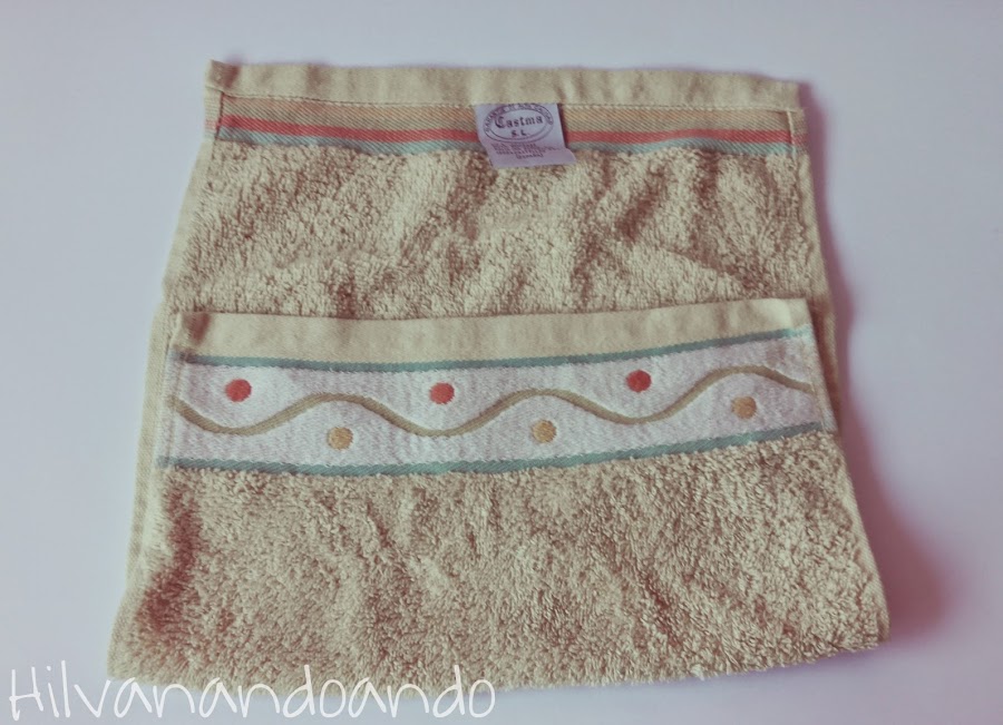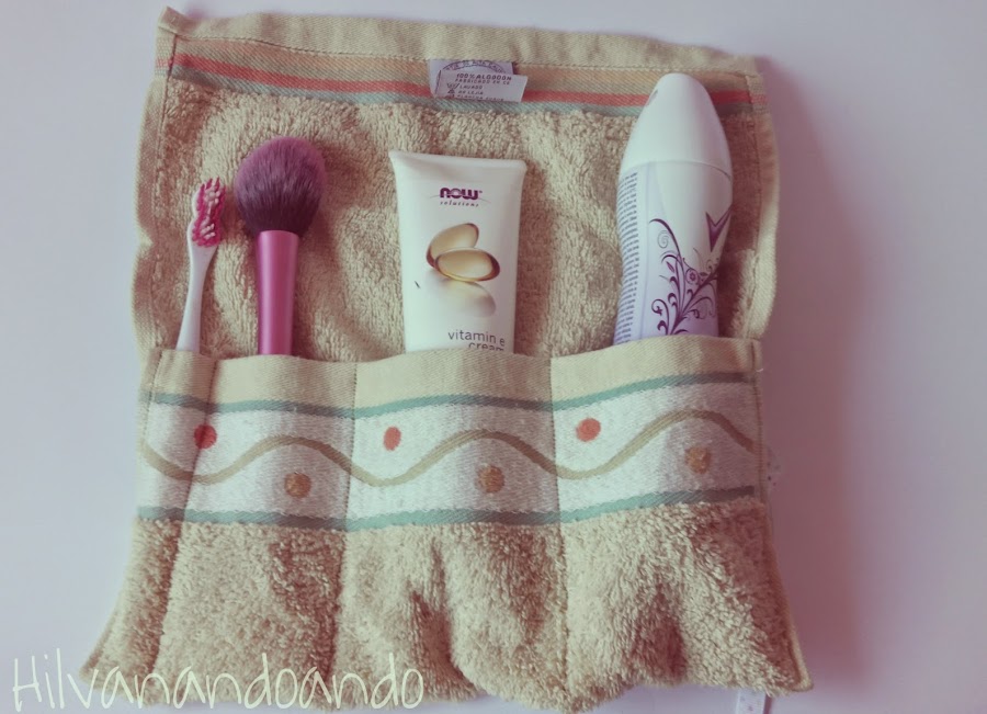 Con una toalla, aguja e hilo podemos crear una manta-neceser para llevar productos cuando viajemos.