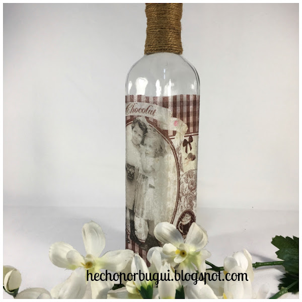 Esa botella de vinagre de Modena decorada con una servilleta muy vintange.