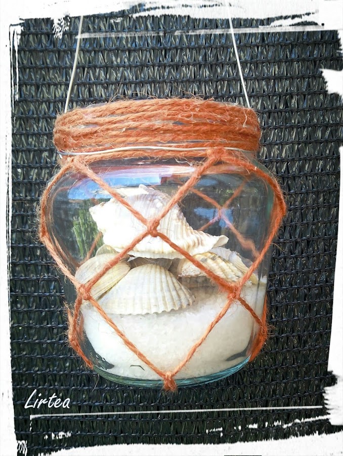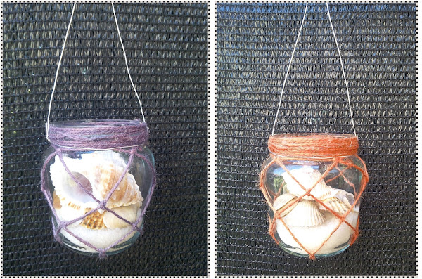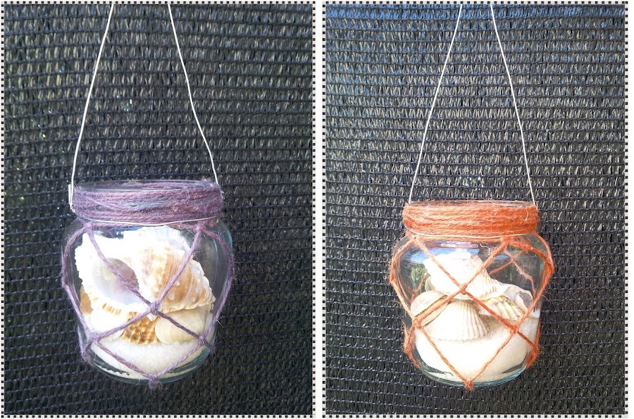 Yo los hice con cuerda de distintos colores. Puse dentro sal gorda y unas conchas que había recogido en la playa.