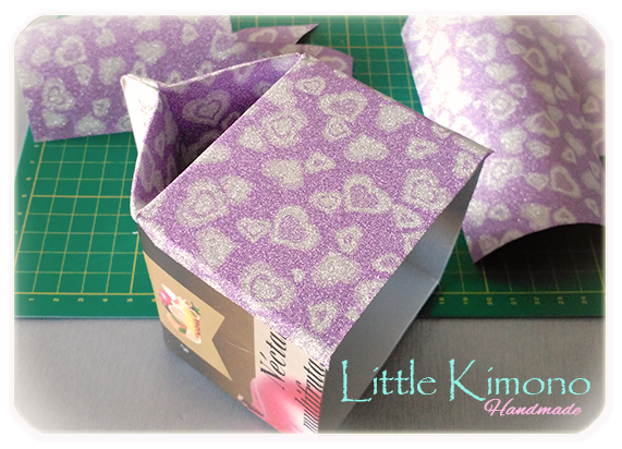 ... en 2 de las 4 caras dejaremos un pelín de más para doblarlo sobre el otro lado como muestran las imágenes de abajo. Ésto es para que no se vean las esquinas de la caja y quede así un mejor acabado ;)
