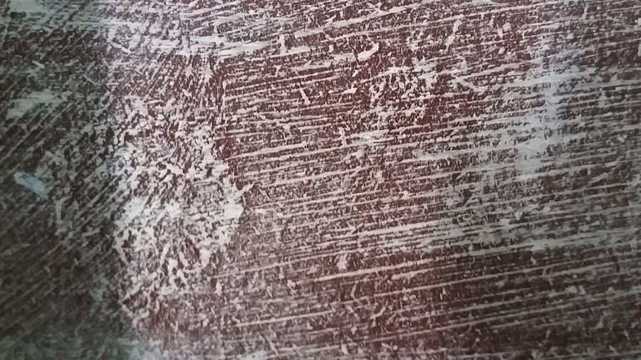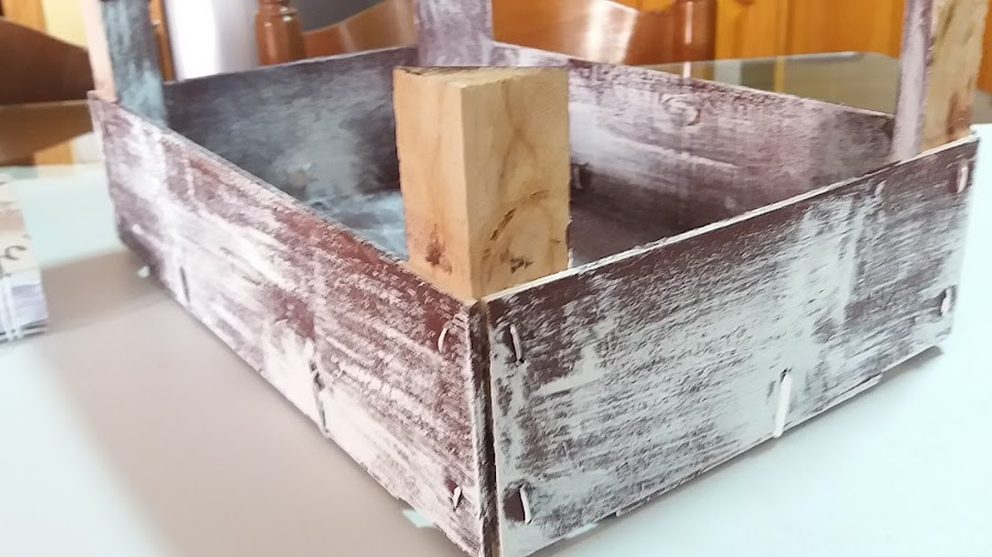 Las fresas ya están en nuestras barriguitas, y quedan los restos del tinte que sueltan cuando se madura. La Pinté en chocolate y después le di una mano de pintura blanca a pincel seco , por dentro le di super seco, como veis.