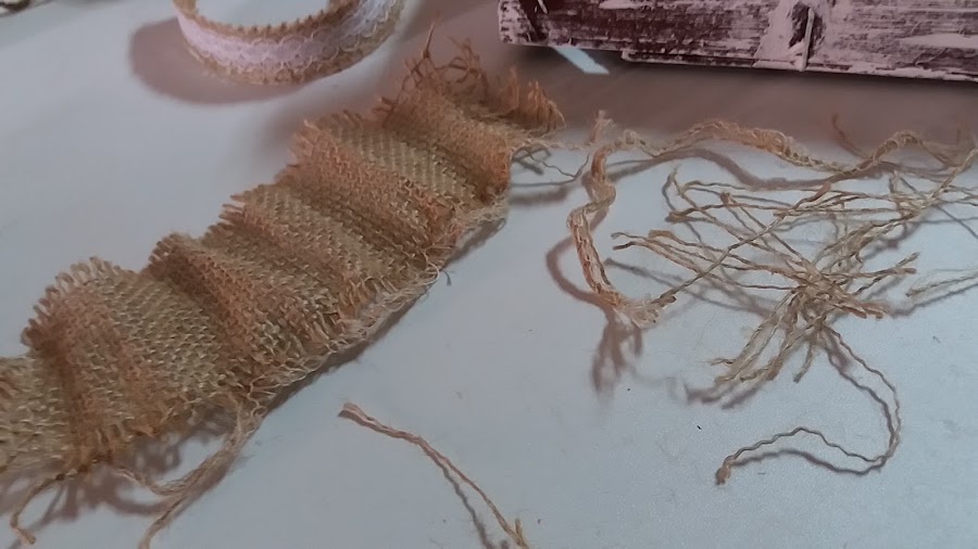 Cogí un trozo de arpillera, la deshilaché, dejándola aún mas rústica,