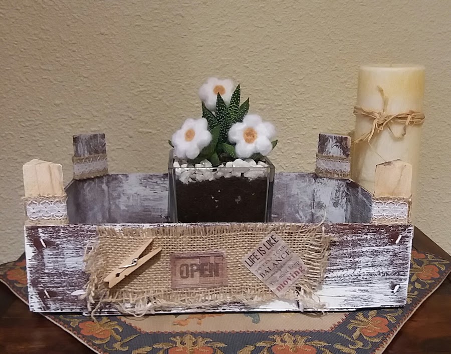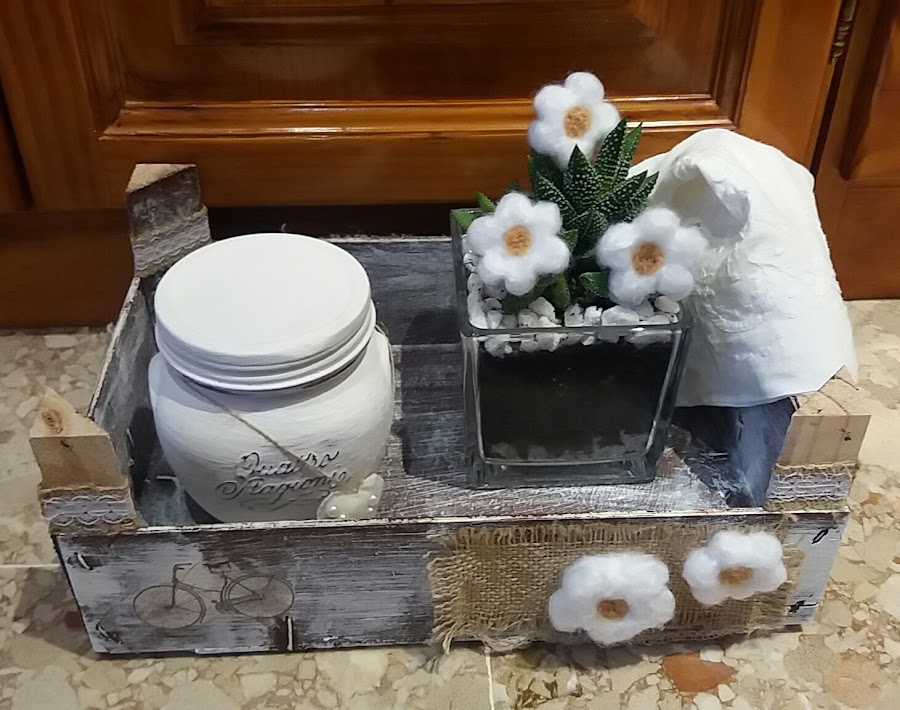 Se le pueden dar muchos usos, en principio le puse una planta y algunos adornos.