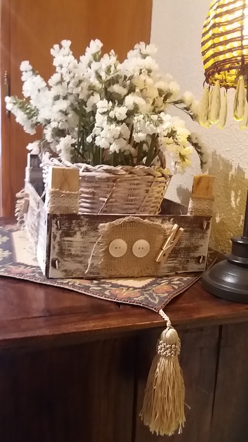 Con una cestita (regalo de la madre de unos amigos, tiene mas de un siglo, y la he dejado tal cual me la dio), con siempre vivas, queda un elemento decorativo muy rústico y hogareño.