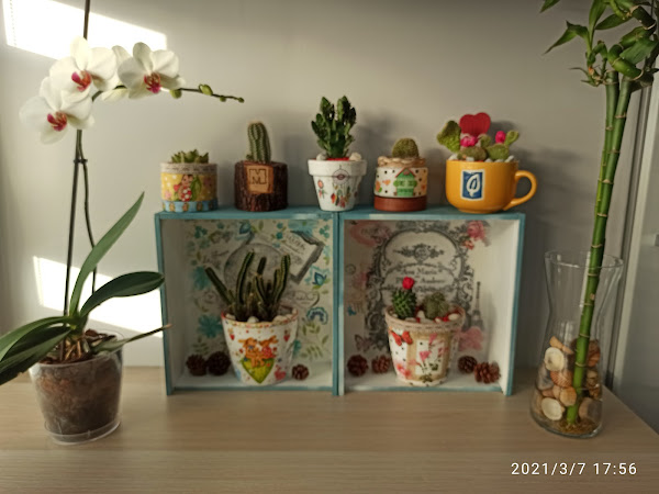 Y así ha quedado mi jardin ,con cactus orquideas y bambú.