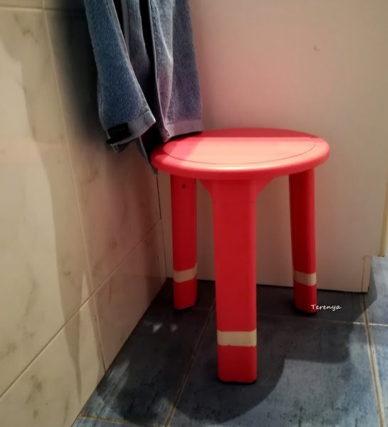 Volviendo a mi silla, ahora luce mucho más bonita en el baño. Me estoy planteando pintar más complementos...