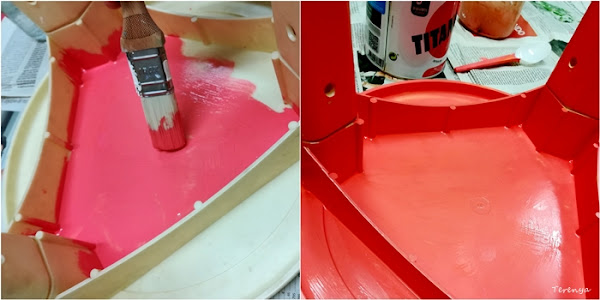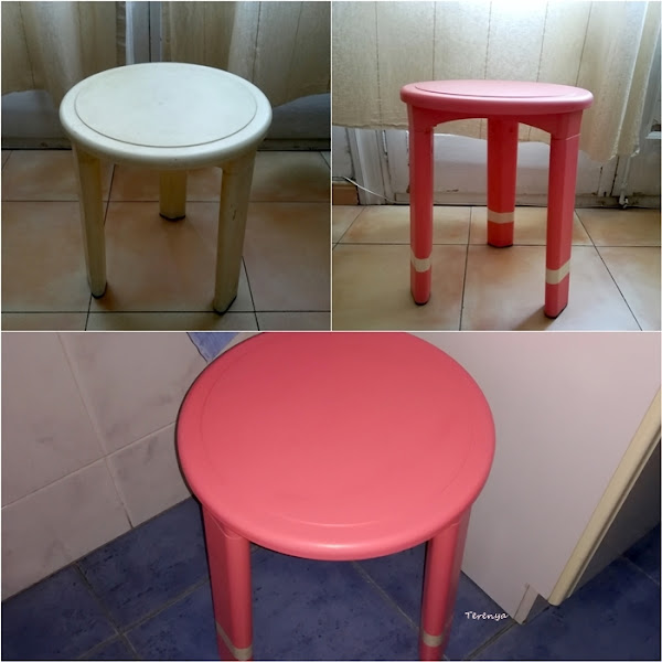 Quería pintar la típica silla de plástico de los baños. Tenía una heredada y pensé que era buena idea reinventarla para el reto de este mes. ¡Qué mejor color que un rosa para ello!, así que me lancé a probar mi pintura nueva y ciertamente no me ha defraudado en absoluto, al contrario, me encanta el acabado y lo mejor es lo bien que se limpia todo después.