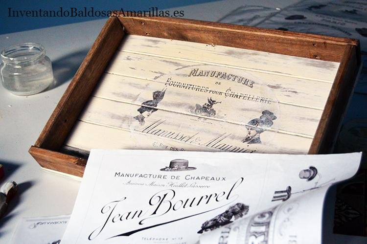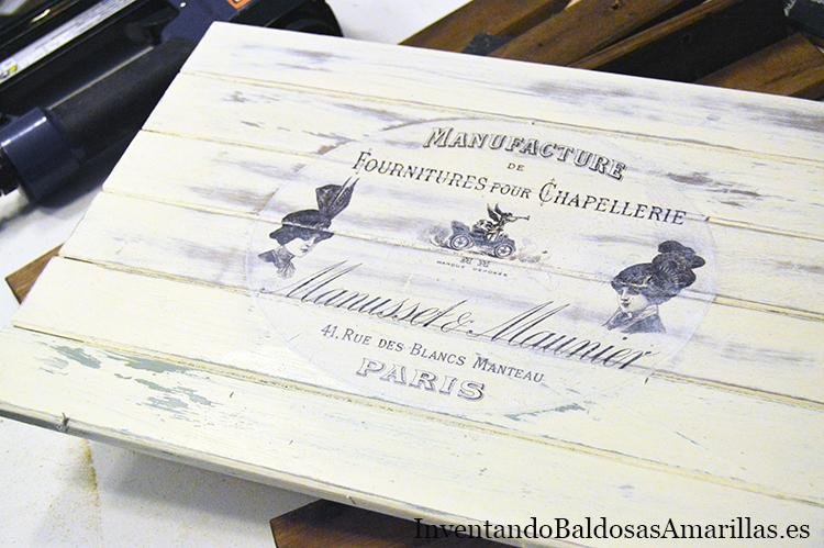 Como ya sabéis para hacer el transfer simplemente damos líquido para transferir en el papel, colocamos en la madera, dejamos secar y luego con agua retiramos la celulosa. En breve os dejaremos un tutorial más detallado porque en unos días incorporaremos a la tienda online estos papeles que ya vienen girados para que puedas transferir imágenes con letras de una forma muy sencilla. Pero si os pica la curiosidad, podéis ver todos los post que hemos publicado sobre transfer, pinchando AQUÍ.