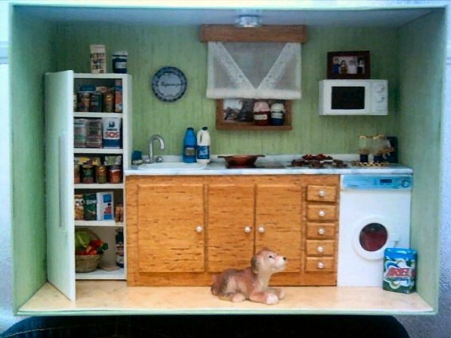 Otra encantadora escena en miniatura a partir de una caja de vino es la que nos ofrece Susan. De hecho, son su gran especialidad y ha realizado numerosas variantes.