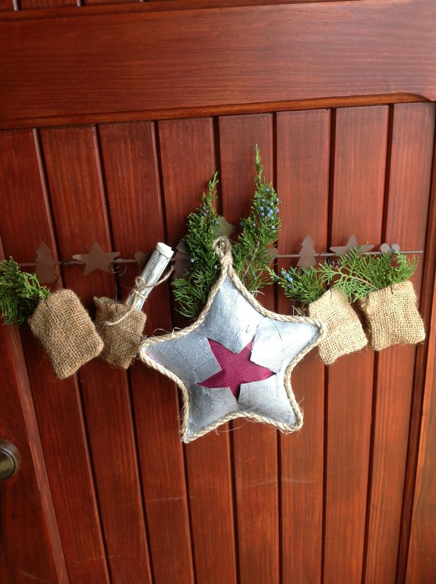 Asi ya tenemos otra parte de la casa decorada ,poniendole algun que otro detalle de ciprés,bolsitas de tela de saco y notas musicales...