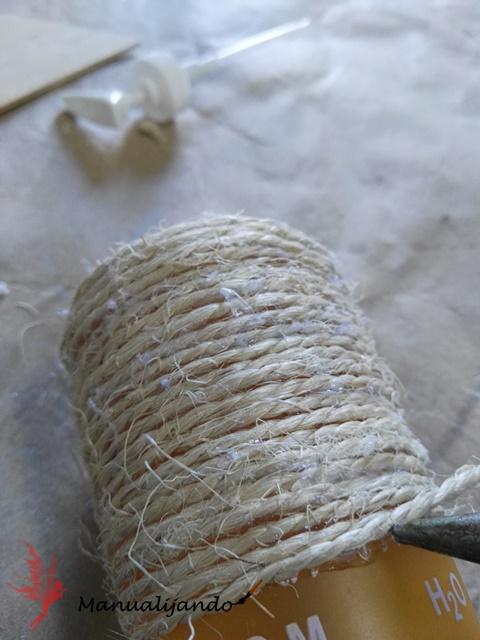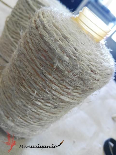 Con cuerda y pistola de silicona fuí pegando poco a poco toda la cuerda al bote