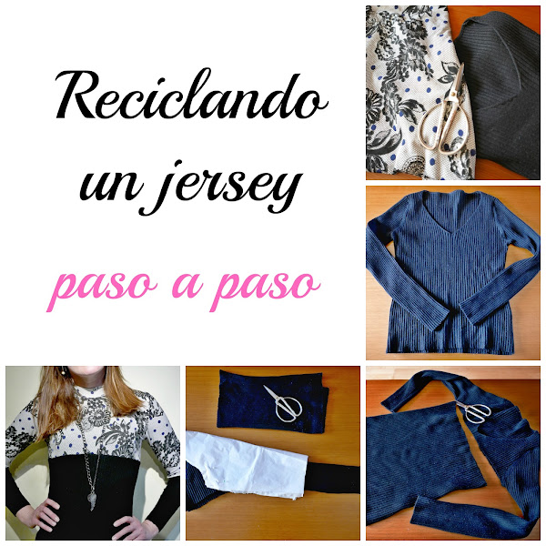 Los materiales los tenía en casa, un jersey que ya no usaba y un trozo de tela de punto que no era suficiente para hacer una camiseta por si solo.