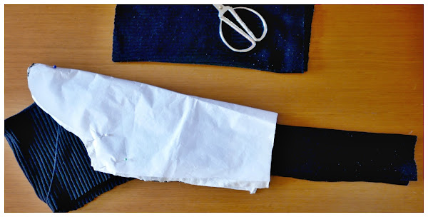 Ya sólo quedaba cortar las piezas en la tela de punto estampada. Lo tenía que hacer con la idea de completar las piezas que ya había cortado del jersey de punto y con la ayuda de un patrón de camiseta básica que tenía.