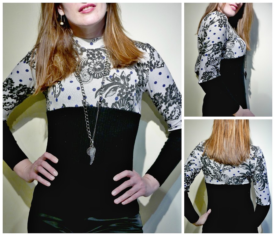 Era cuestión de quedarse con las zonas de punto rematadas, que podían servir apra complementar a la tela estampada. Consiguiendo que el nuevo jersey esté terminado en cuanto a los bajos de una forma instantánea.