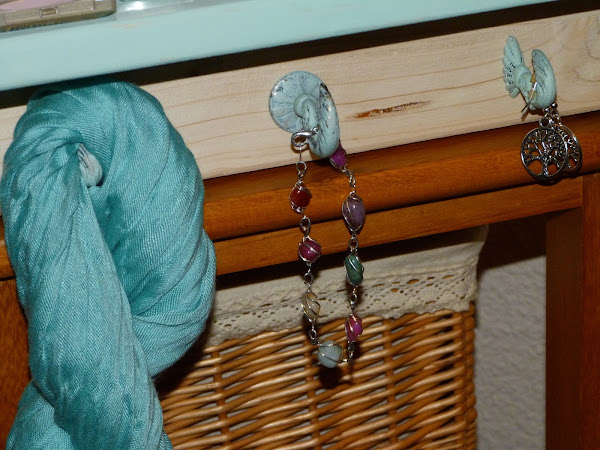 Por último, he pintado también con chalk paint unos colgadores dorados y los he atornillado a la base, debajo del estante.