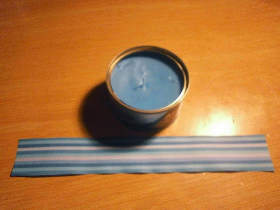Medimos el contorno de la lata y cortamos el papel a la medida y lo pegamos con silicona. Adornar al gusto de la persona.