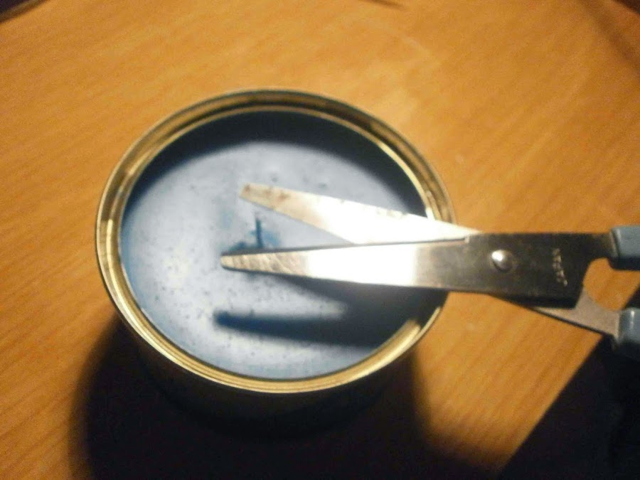 Una vez fría la cera cortamos el hilo sobrante.