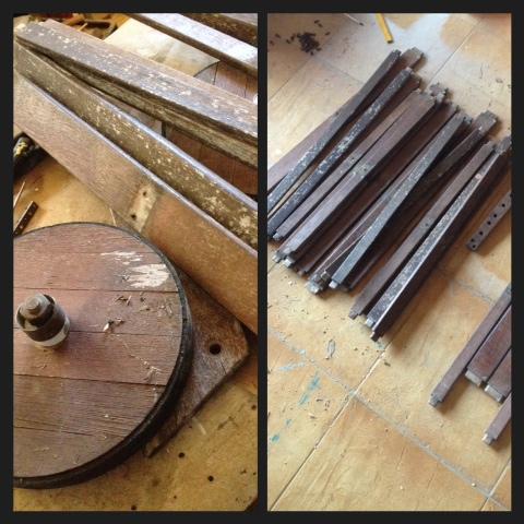 En la parte de abajo coji unas maderas que tenia ...de cajas de frutas...