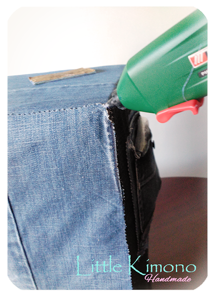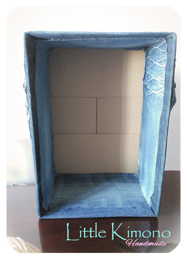 3. Tercer Paso: Yo pegué en los laterales unos bolsillos para guardar las agujas y alrededor de la caja alguna etiqueta de los vaqueros ;) pero eso es a gusto de cada una... ahora... a guardar nuestras lanas!! ^_^