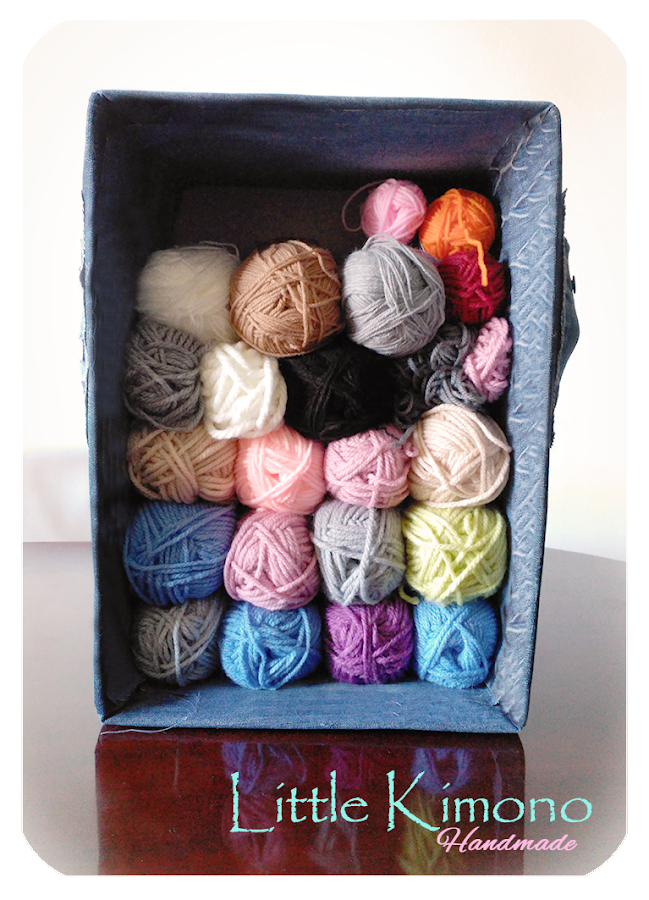he aprovechado y he hecho muyyy rápido y de una manera muuuy sencilla (por eso no hice muchas fotos jiji) una caja para meter mis lanas más gordas porque en la caja que las tenía ya no cabían jeje