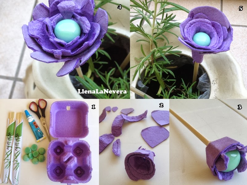 La idea de hoy la he realizado con un cartón de huevos (4) morado que compré con una amiga en Trier, y no, no es que compráramos el carton de huevos aposta, sino que venían dos huevos de chocolote riquísimos, y yo que guardo todo me quedé con el cartón. Sabía que algún uso le acabaría dando.