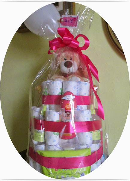 Otra bonita tarta de pañales que ha ido a casita de Jose Angel para que sus papis hagan buen uso de las cosicas que lleva incluidas . Y dentro de poquito otra más.