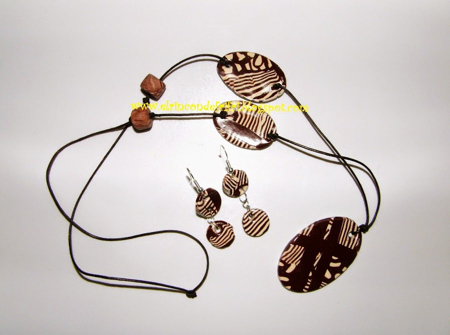 Para mi última reconstrucción, traigo un conjunto de collar y pendientes en color marrón y marfil: