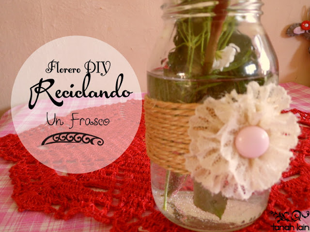 En el blog TanahLain tenemos un sencillo pero bonito florero hecho reciclando un frasco y decorándolo con cuerda,viene con paso a paso y video tutorial,así que será muy sencillo hacerlo,pinchar AQUI y lo veréis.