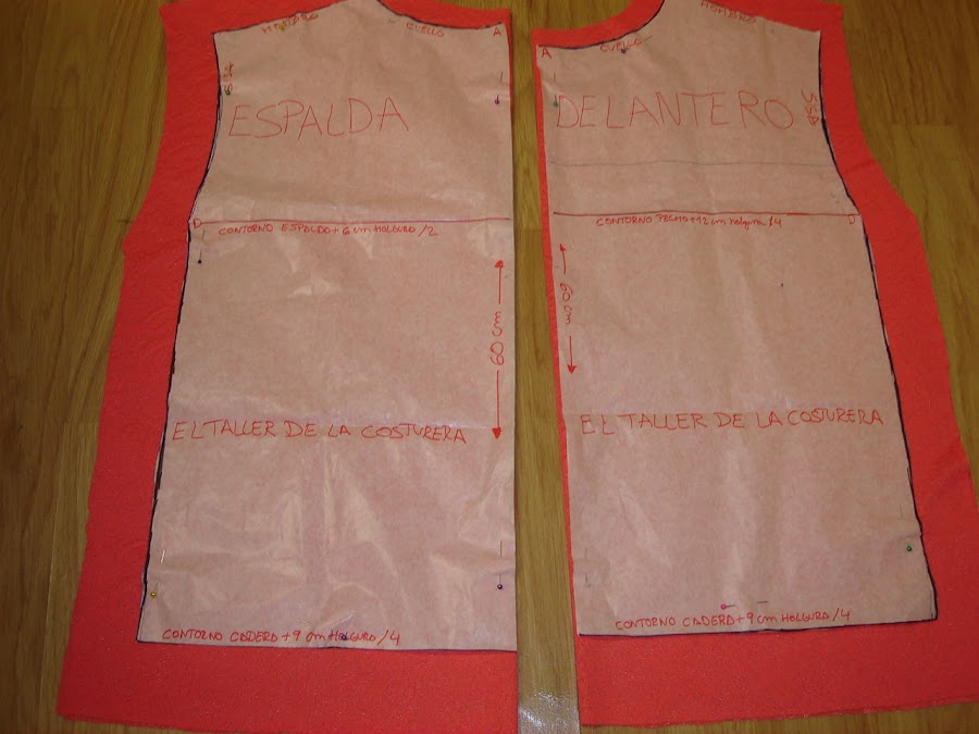Y asi es como queda el patron en papel y colocado en la tela.