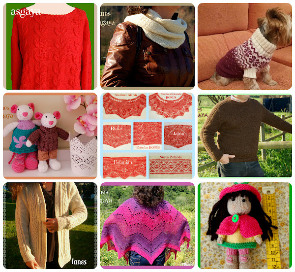 Y en mis agujas, como siempre, probando técnicas nuevas, siempre aprendiendo.... Jerseys, chales, muñecas y hasta un jersey para un perro, que nunca lo había hecho.