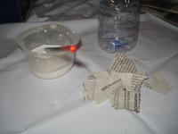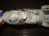 y cubrimos la botella , una capa de mezcla, un papel y volver a ponerle mezcla
