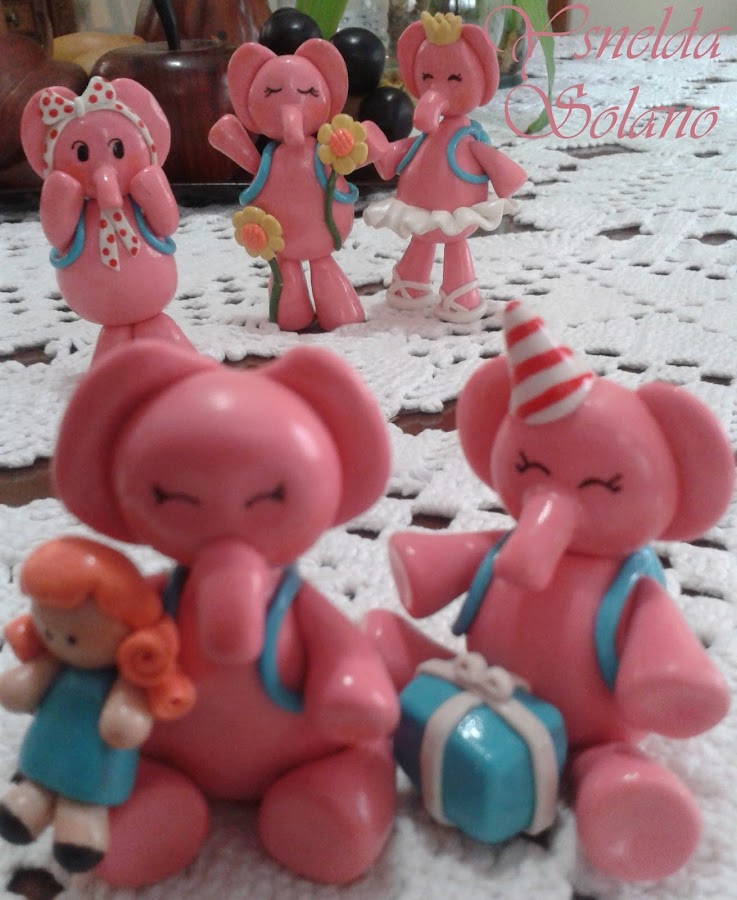 Para inicios del mes de septiembre estuve publicando el proceso de realización de este encargo, para una amiga amante de los elefantes, de cinco elefantitas rosas, inspiradas en el personaje Elly de Pocoyo. Estas figuras, marcan, en cierta forma un punto de cambio, que me permitido conocer un grupo de blogs de excelentes artesanas, ya que con la Elly de cara de asombro, empecé a participar en el Reto Handmade de Little Kimono. Agradecida a quien me sugirió participar, a quien a resultado, a parte de una excelente bloguera, una persona preciosa, me la imagino siempre con una sonrisa en su carita, hasta cuando está haciendo sus complicadas figuras, con mil minipiezas de goma eva, Yoli del blog creando y fofucheando.