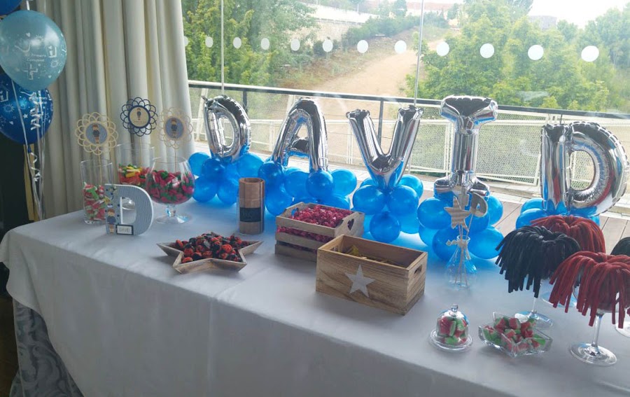 Fui la encargada de hacer la imagen para su comu... los recordatorios para niños y padres, las etiquetas personalizadas y los parte de la decoración de la mesa de chuches.