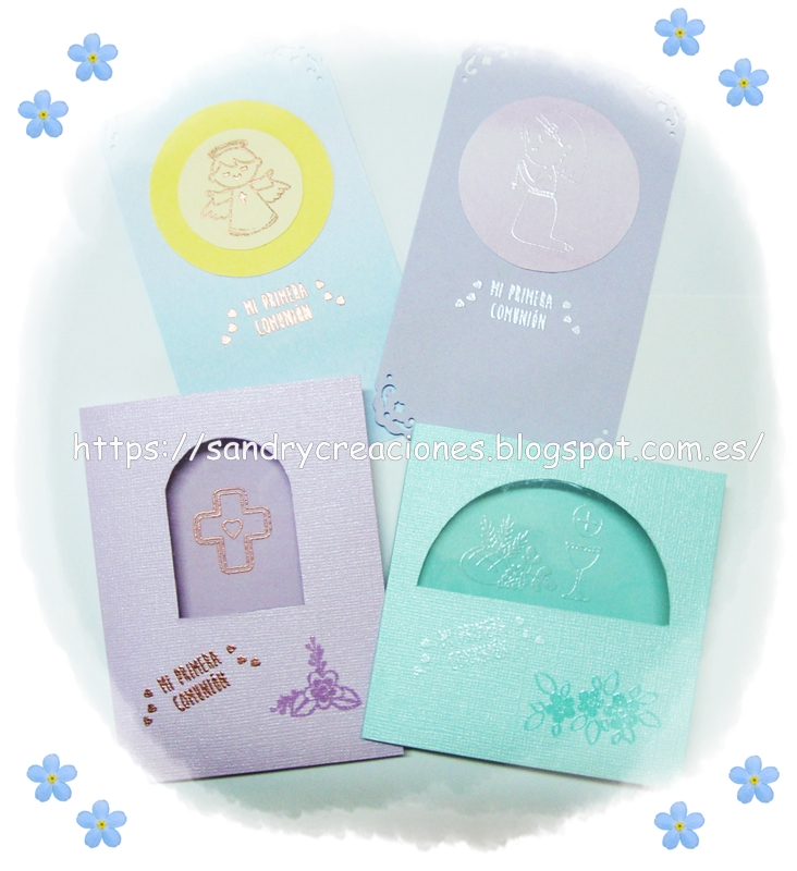 Aprovechando que el mes que viene llegan las comuniones y que el año pasado nos quedaron pendientes estas ideas de recordatorios y solo hicimos "Souvenirs de Comunión con Hama Beads y cartulina", este año era prioridad hacer esta entrada y sacar esas ideas de la cabeza para plasmarlas en físico. También hemos aprovechado esta entrada para introducirnos con los polvos de embossing, que si bien ya los habíamos probado y utilizado con la entrada "Pendientes de Pasta Polimérica con PearlEx y Polvos de Embossing" aun no habíamos hecha nada para el blog con ellos sobre papel, usando tinta y sellos. En este caso la experimentación ya estaba hecha y sabíamos mas o menos donde íbamos ya que habíamos realizado bastantes pruebas, pero como decimos aún no habíamos hecho nada para el blog.