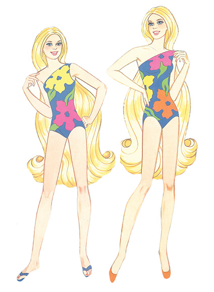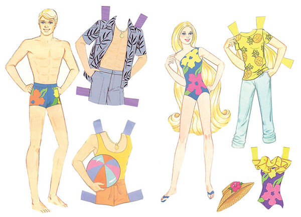 Además de los fantásticos looks playeros de Ken, con sus abdominales y su medalla de oro (muy de los 80 todo) me llama la atención que Barbie y su hermana Skipper son iguales... vamos que solo se diferencian por la altura y por el calzado.