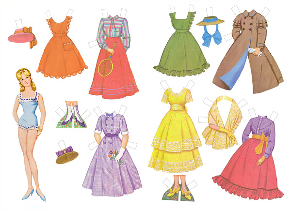 Hoy os traigo la muñeca recortable de Hayley Mills en la película "Summer Magic" o "Verano Mágico" del año 1963, de las tres que tengo de ella ésta es mi preferida porque el vestuario es bastante fiel al de la peli. Os he preparado ejemplos: