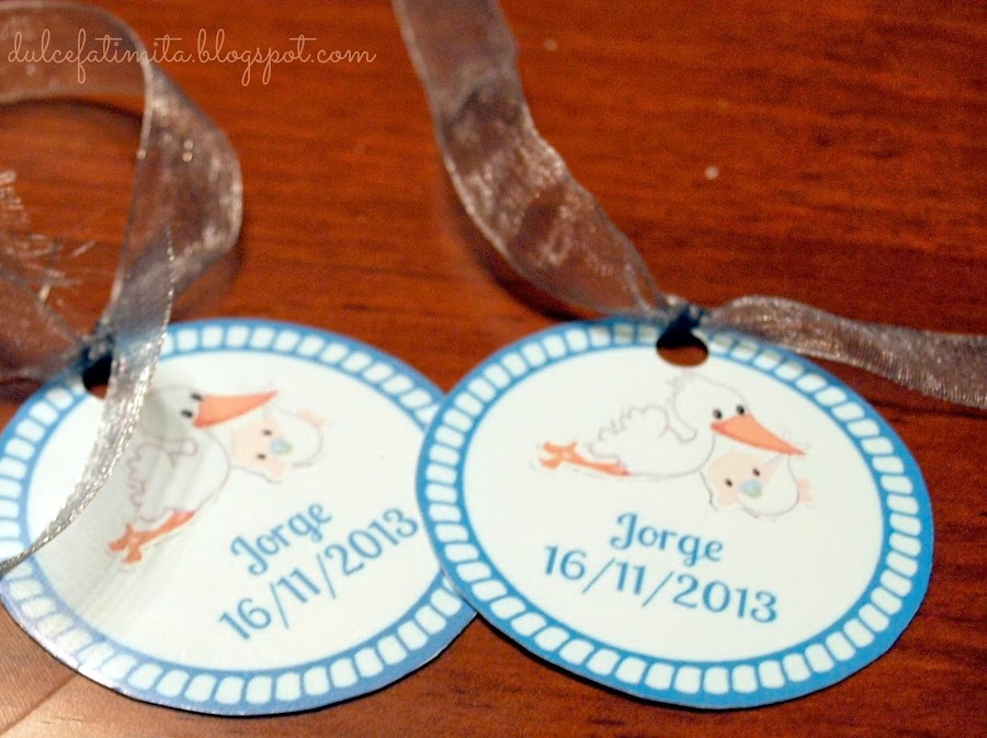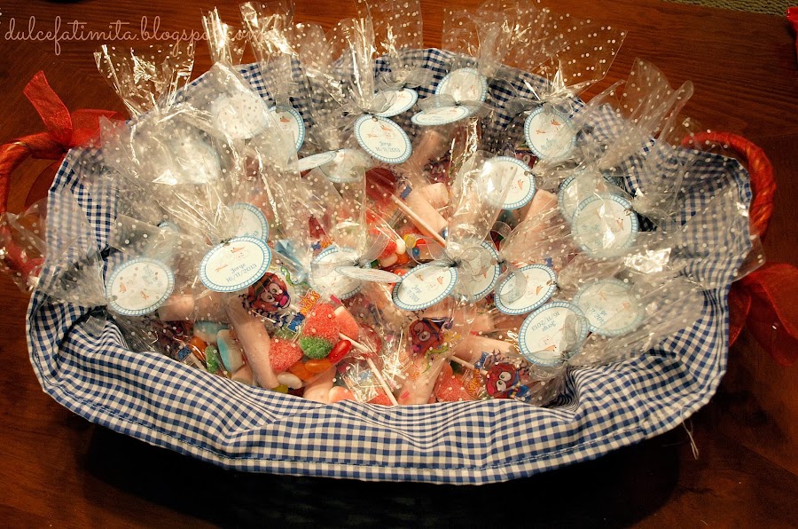 Preparé las etiquetas con Picmonkey, las imprimí en papel de foto, porque mi impresora es "tan guay" que no me deja imprimir en cartulina, unos lazos para atarlas y unas cuantas chuches.