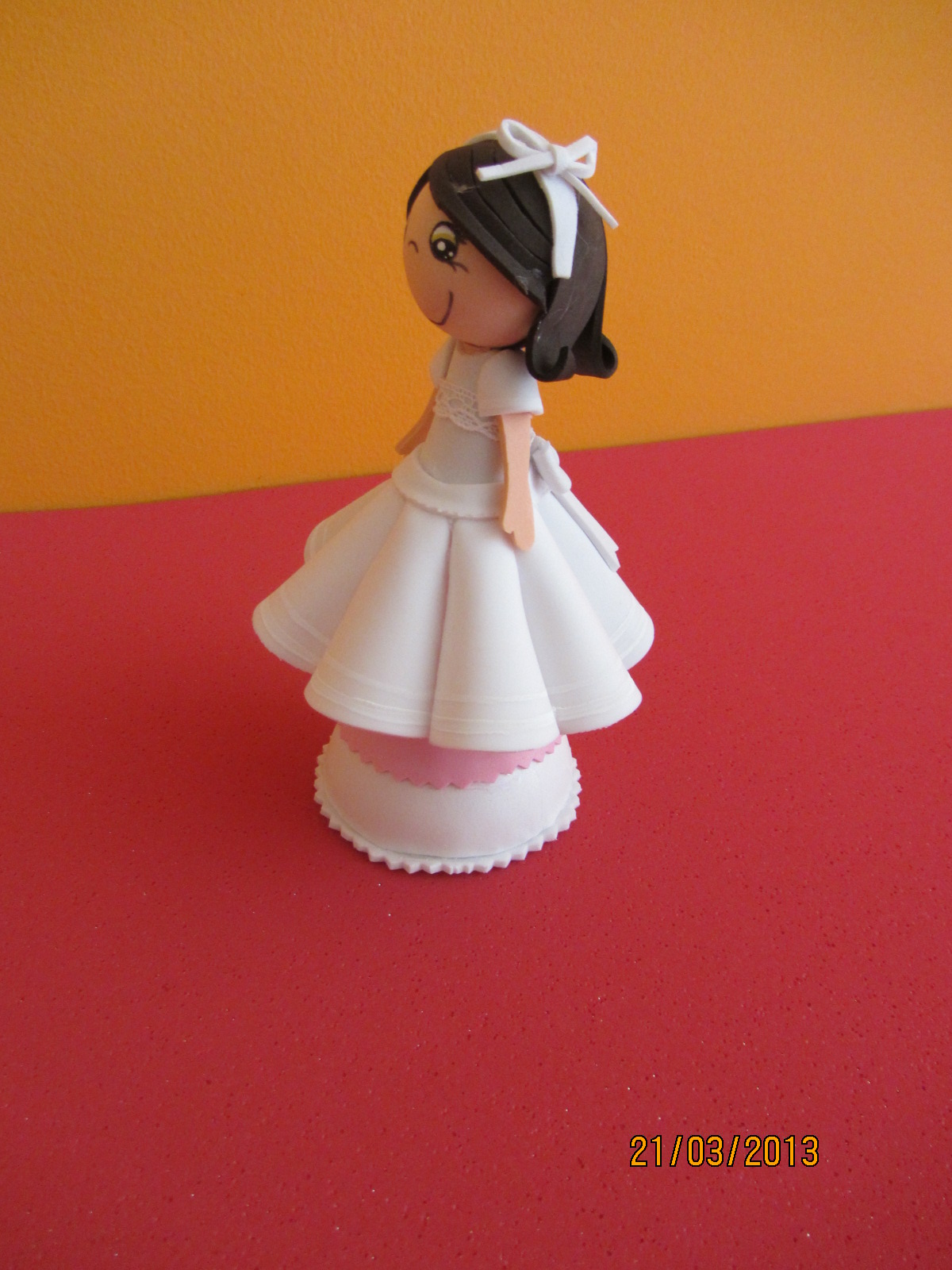 Os muestro a continuación esta mini muñequita de comunión como detalle de recuerdo de este fantástico día. Se puede personalizar también como las muñecas grandes (pelo y ojos) y en la base de sujeción podemos poner el nombre y la fecha de la niña que la celebra.