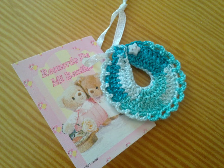 Opción D: Baberito con saquito de tul, lazo y tarjeta. Igual que en la anterior opción se pueden añadir caramelos, etc. También se une con imperdible.
