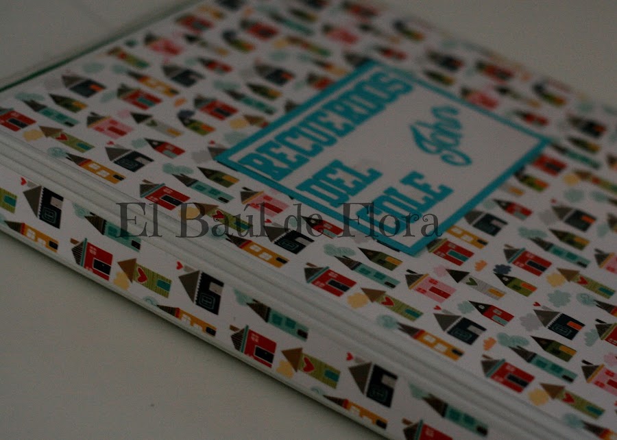 Para empezar cortamos un papel del tamaño del bolsillo de la carpeta, otro para el lomo y otro para la parte trasera. Lo decoramos con letras adhesivas para escribir nuestro título. Recuerdos del Colegio.