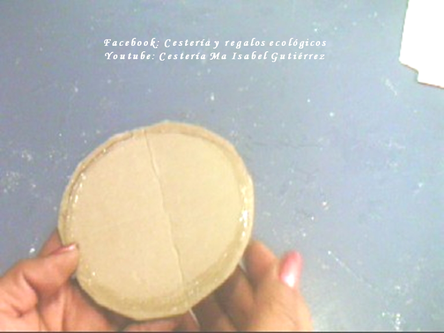 Le pegamos una rueda de papel blanco por dentro, luego cortamos una rueda de tela un centímetro mas grande que la base de nuestra cajita...