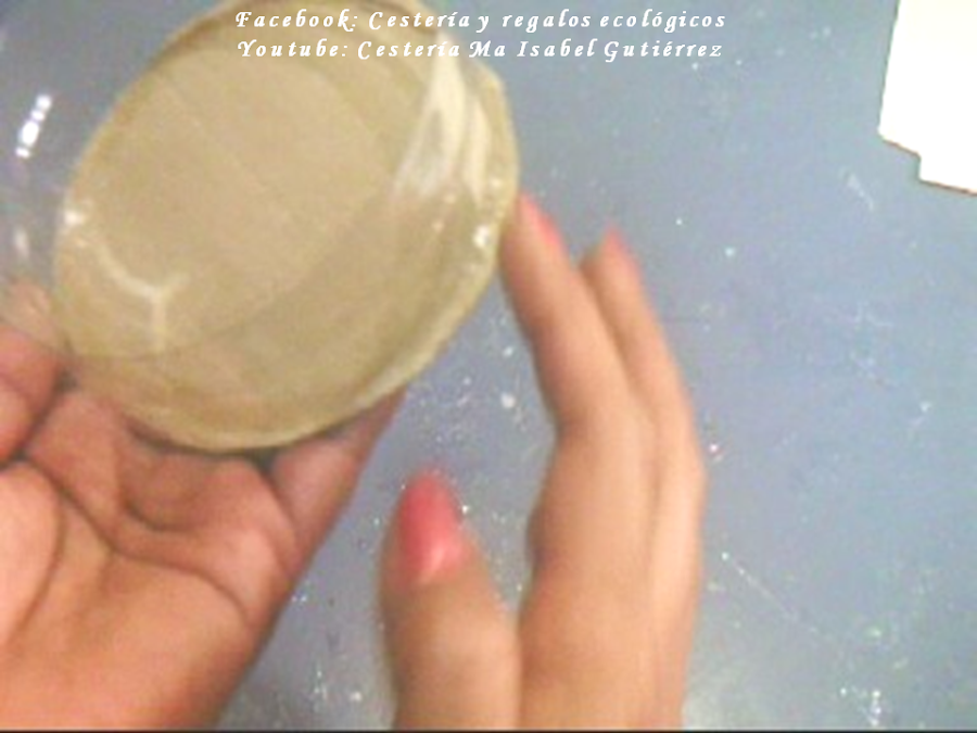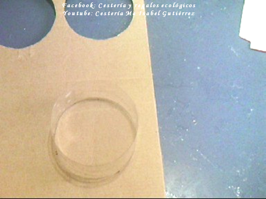 Sentamos ahí la rueda de plástico y cuando seque, recortamos el excedente de cartón que queda bajo...