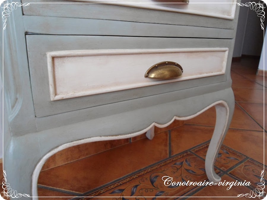 Para el acabado, he utilizado también las ceras de Annie Sloan . Primero di la incolora y luego di la oscura. Es la primera vez que trabajo con cera para el acabado, y os puedo decir que estoy muy contenta con el resultado. Queda un acabado muy fino y suave.