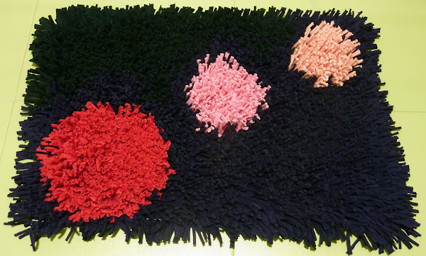 Y este fue el resultado final, la verdad es que no recuerdo las dimensiones exactas, la hice de un tamaño pequeño, para usarla como alfombra para el baño.