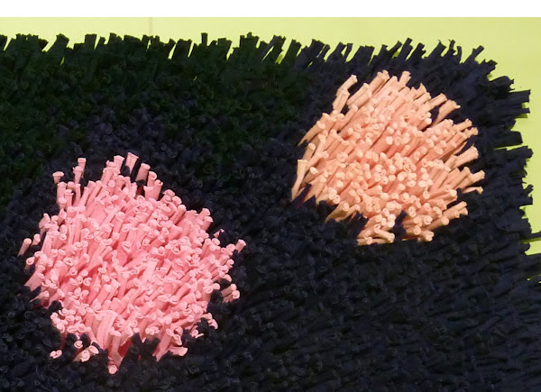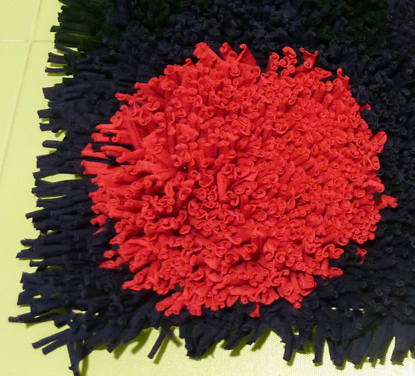 Como veis he combinado varios colores haciendo formas geométricas en un degradado de rosas. El diseño o colores que uséis solo depende de lo que queráis hacer o el uso que le vayáis a dar. En mi caso elegí colores oscuros y tiras largas para que quedase una alfombra mullida.