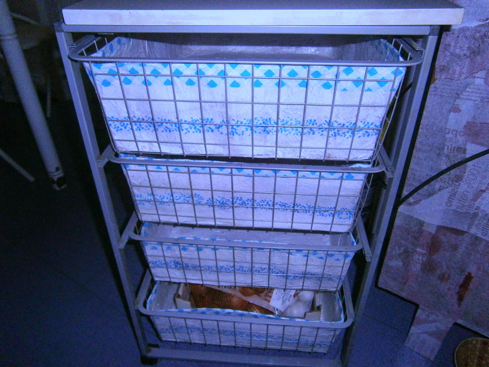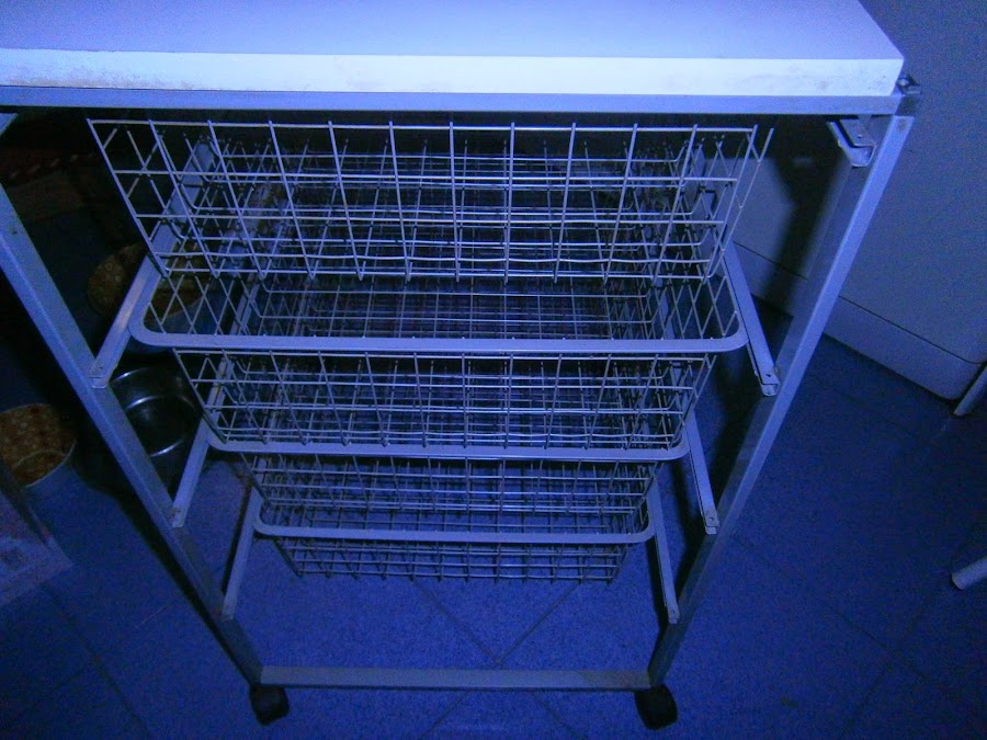 Y este es el cacharrito que me propongo mejorar, como veis es un mueble auxiliar de cocina, este tipo de muebles presentan un desahogo ya que tiene mucha capacidad, pero tiene el inconveniente de que todo lo que le pongas esta a la vista y además las cosas pequeñas se cuelan por los agujeros, así que he decidido cubrirlas.
