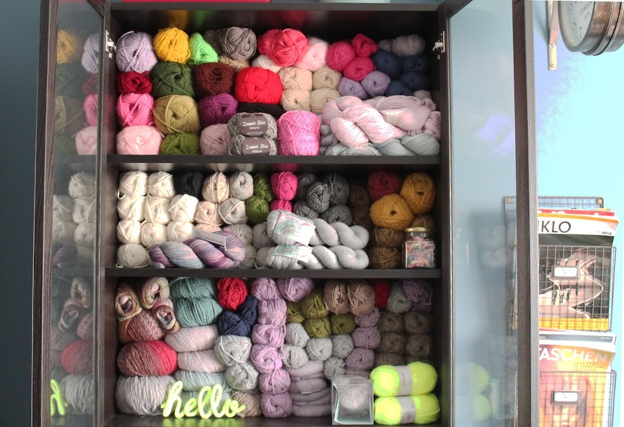 A lo largo de los últimos años he ido acumulando ovillos de lana que compraba porque me gustaba su textura, su color, por si acaso me hacían falta, etc... y ahora tengo un armario lleno de ovillos que esperan que llegue su momento.